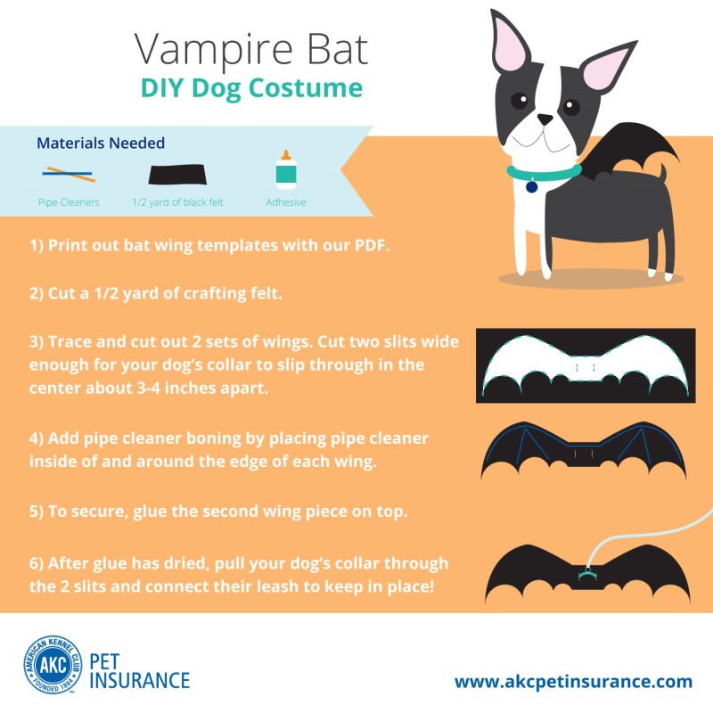 Vampire Bat Wings: Turn your pet into a creature of the night with just some felt, pipe cleaners, and a little bit of adhesive tape or glue from the craft store.